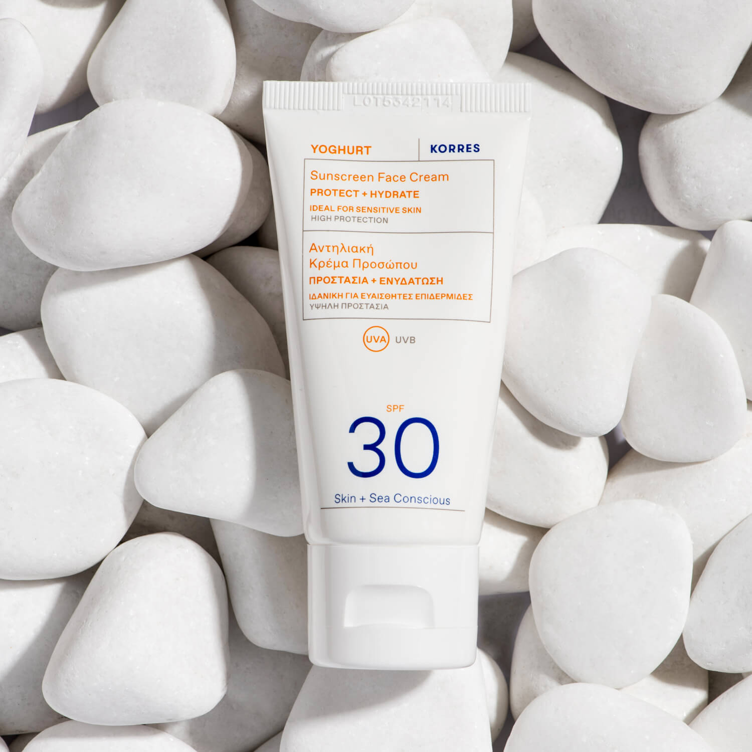 AQUA/WATER/EAU, DIBUTYL ADIPATE, ISOAMYL LAURATE, DIETHYLAMINO HYDROXYBENZOYL HEXYL BENZOATE, ETHYLHEXYL SALICYLATE, GLYCERIN, UNDECANE, TRIS_BIPHENYL TRIAZINE (NANO), BIS_ETHYLHEXYLOXYPHENOL METHOXYPHENYL TRIAZINE, POLYMETHYL METHACRYLATE, DIETHYLHEXYL BUTAMIDO TRIAZONE, ETHYLHEXYL TRIAZONE, POLYAMIDE-3, TRIDECANE, ACRYLATES/C10-30 ALKYL ACRYLATE CROSSPOLYMER, ARGANIA SPINOSA KERNEL OIL, BISABOLOL, BUTYLENE GLYCOL, CETEARYL ALCOHOL, DECYL GLUCOSIDE, DISODIUM CETEARYL SULFOSUCCINATE, DISODIUM PHOSPHATE, ETHYLHEXYLGLYCERIN, GLYCERYL STEARATE, LACTIC ACID, LONICERA CAPRIFOLIUM (HONEYSUCKLE) FLOWER EXTRACT, LONICERA JAPONICA (HONEYSUCKLE) FLOWER EXTRACT, PANTHENOL, PENTAERYTHRITYL TETRA-DI-T-BUTYL HYDROXYHYDROCINNAMATE, SCLAREOLIDE, SILICA, SODIUM CARBOXYMETHYL BETA_GLUCAN, SODIUM HYDROXIDE, SODIUM PHYTATE, TOCOPHEROL, TOCOPHERYL ACETATE, XANTHAN GUM, YOGURT POWDER, ZINGIBER OFFICINALE (GINGER) ROOT EXTRACT, PHENOXYETHANOL, PARFUM/FRAGRANCE.